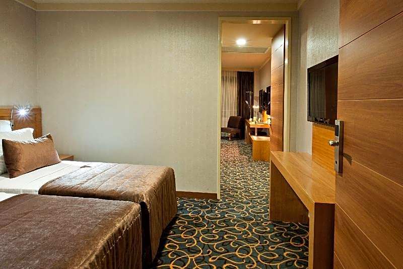 The hotel boasts an impressive array of amenities to enhance your stay, including a refreshing outdoor swimming pool, complimentary WiFi, and a child-friendly buffet. For those looking to relax and unwind, there are options such as a Turkish bath, sauna, and spa available for an additional charge. Guests can also enjoy the convenience of room service, a fitness center, and a sun deck overlooking the city.
